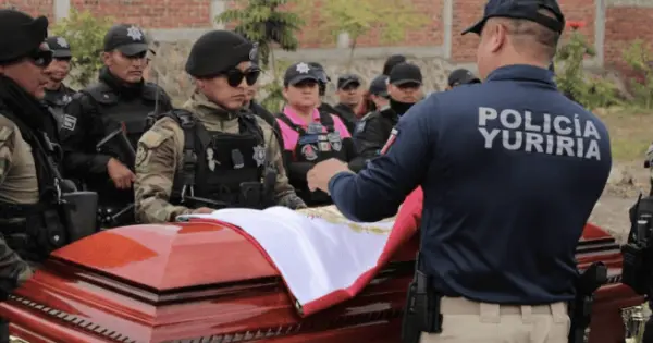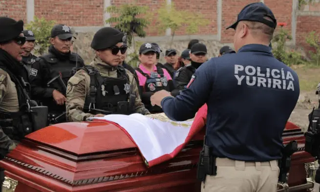 YURIRIA, Gto.- El gobierno de Yuriria, Guanajuato despidió con honores al comandante Alain Santos Gasca, quien murió a causa de un enfrentamiento con un grupo armado la noche del viernes pasado en la comunidad San Vicente Zapote, en este municipio.