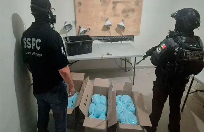 En un comunicado aparte, la SSPC, apuntó que durante las acciones operativas se ubicaron dos domicilios que eran utilizados como laboratorio clandestino y bodega para el almacenamiento de narcóticos.