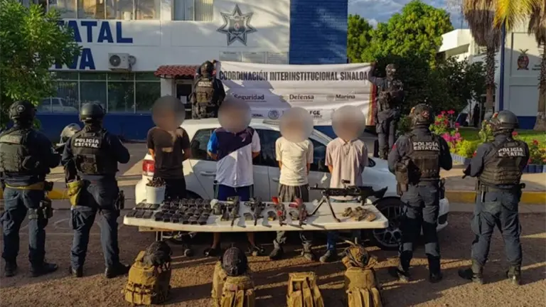Detienen a cuatro hombres, incluido un menor, con arsenal en fraccionamiento de Culiacán