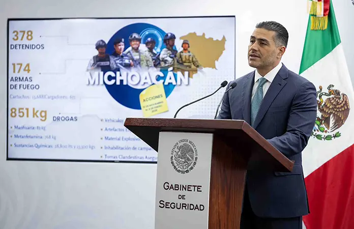 García Harfuch detalló que tras la detención de Josué Elogio "N", el pasado 9 de enero, se realizaron tres cateos en inmuebles ubicados en Uruapan y relacionados con los detenidos, donde se aseguró droga y ocho equipos de comunicación que dieron más indicios para continuar con la indagatoria.