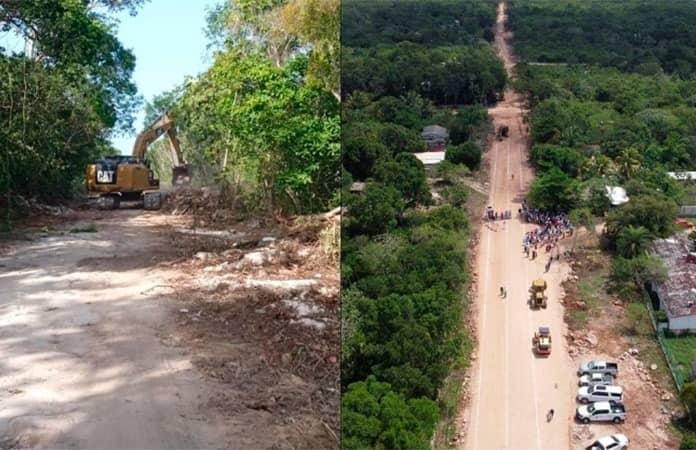 Estas obras forman parte de los trabajos accesorios del megaproyecto Tren Maya, desarrollado por el gobierno federal y buscan mejorar las condiciones de un camino tradicional ya existente desde 1930, pavimentando 22 de sus 60 kilómetros, para tener acceso directo de la cabecera municipal hacia la costa, atravesando la selva.