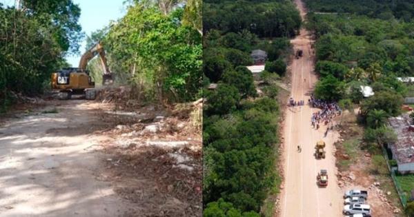 Los trabajos en el camino de casi 60 kilómetros comenzaron desde el 18 de agosto pasado, sin permisos, con la introducción de maquinaria pesada y el derribo de árboles, de acuerdo con reportes de organizaciones civiles.