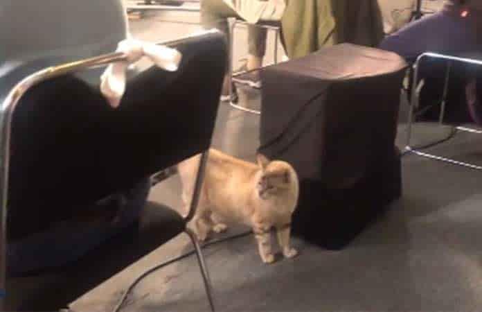 Durante la mañanera de este jueves, hizo acto de presencia "Zeus", uno de los gatos que viven en Palacio Nacional.