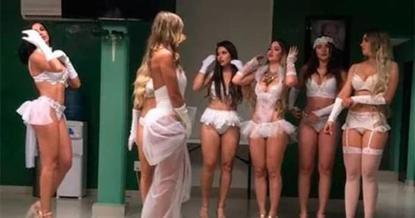 La sección 22 del Sindicato Nacional de Trabajadores Petroleros de la República Mexicana festejaron la expropiación petrolera con edecanes en lencería.