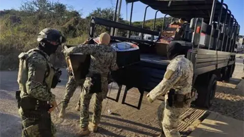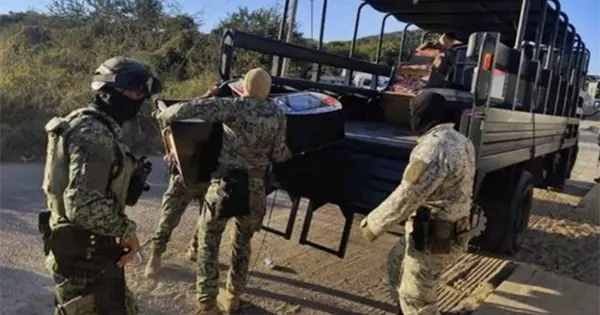 Durante un recorrido terrestre por el poblado de Bacacoragua, en la sierra de Badiraguato, el personal militar localizó diez artefactos explosivos tipo cohete con una longitud de 32 centímetros y cinco de diámetro.