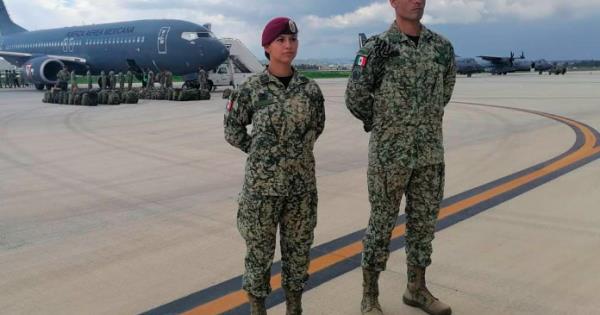 Los primeros en portarlo fueron los 128 elementos de la Brigada de Fusileros Paracaidistas que arribaron este martes a la Base Aérea Militar Número de Santa Lucía, aledaña al Aeropuerto Internacional Felipe Ángeles (AIFA), procedentes de Lousiana, Estados Unidos, donde participaron en el Ejercicio Rotacional realizado en el Centro de Adiestramiento de Preparación Conjunta (JRTC, por sus siglas en inglés) Fort Polk.