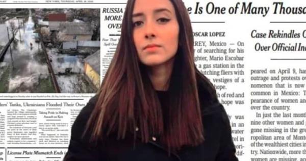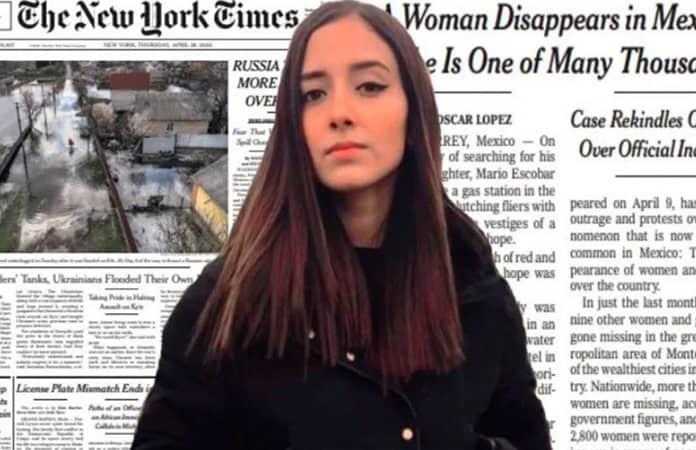 En la portada de su edición impresa del 28 de abril, aparece el caso de la joven de 18 años, con el título “A woman disappears in Mexico. She is one of many thousands” (Una mujer desaparece en México. Ella es una de miles).