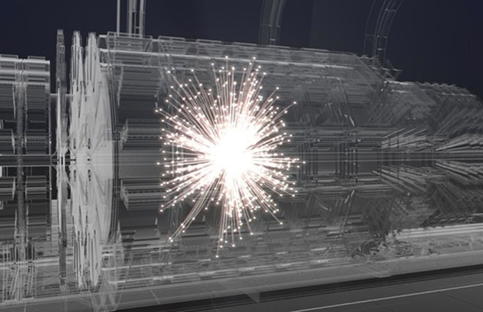 Por el túnel pasa un ancho tubo, con dos tuberías por las que se disparan, flujos de protones en direcciones opuestas. Estas partículas que forman el núcleo de todos los átomos, son aceleradas dentro de los kilómetros de tuberías hasta alcanzar casi la velocidad de la luz. Al llegar a la gran cámara Atlas; mediante imanes, el haz de protones es reducido hasta el diámetro de un cabello humano. Cuando los dos flujos opuestos se encuentran y algunos de los velocísimos protones chocan de frente, se parten en mil pedazos. En la cámara Atlas, sofisticados instrumentos detectan la trayectoria y energía de los fragmentos resultantes; identificándolos y caracterizándolos investigando las partículas más pequeñas de la materia; parecido a como hace un niño que rompe un juguete para intentar ver de qué está hecho.