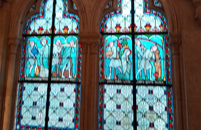? Clásicos vitrales que forman juegos de luces en los pisos con la luz del sol a lo largo del día.