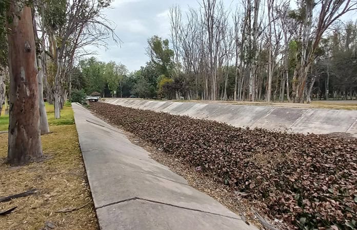 - Canal saturado de Lirio Acuático en Parque Tangamanga 1.