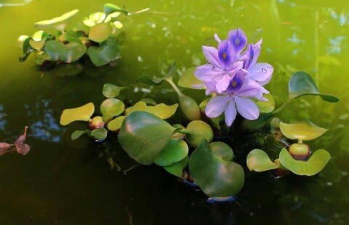- Lirio Acuático. Eichhornia crassipes. De atractivas flores color violeta y tallos esponjosos para flotar, es indicadora de contaminación.