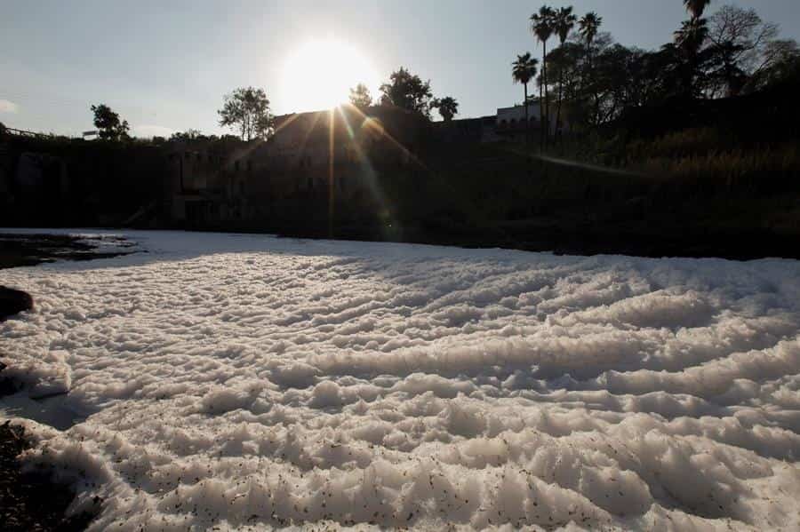 El establecimiento de unas 250 empresas que vierten sus desechos a lo largo de los 72 kilómetros de su cauce han convertido al río Santiago en una mezcla de agua negra, espuma blanca y olores fétidos que provocan dolor de cabeza, náuseas y comezón en la piel tan solo de olerlos unos minutos.