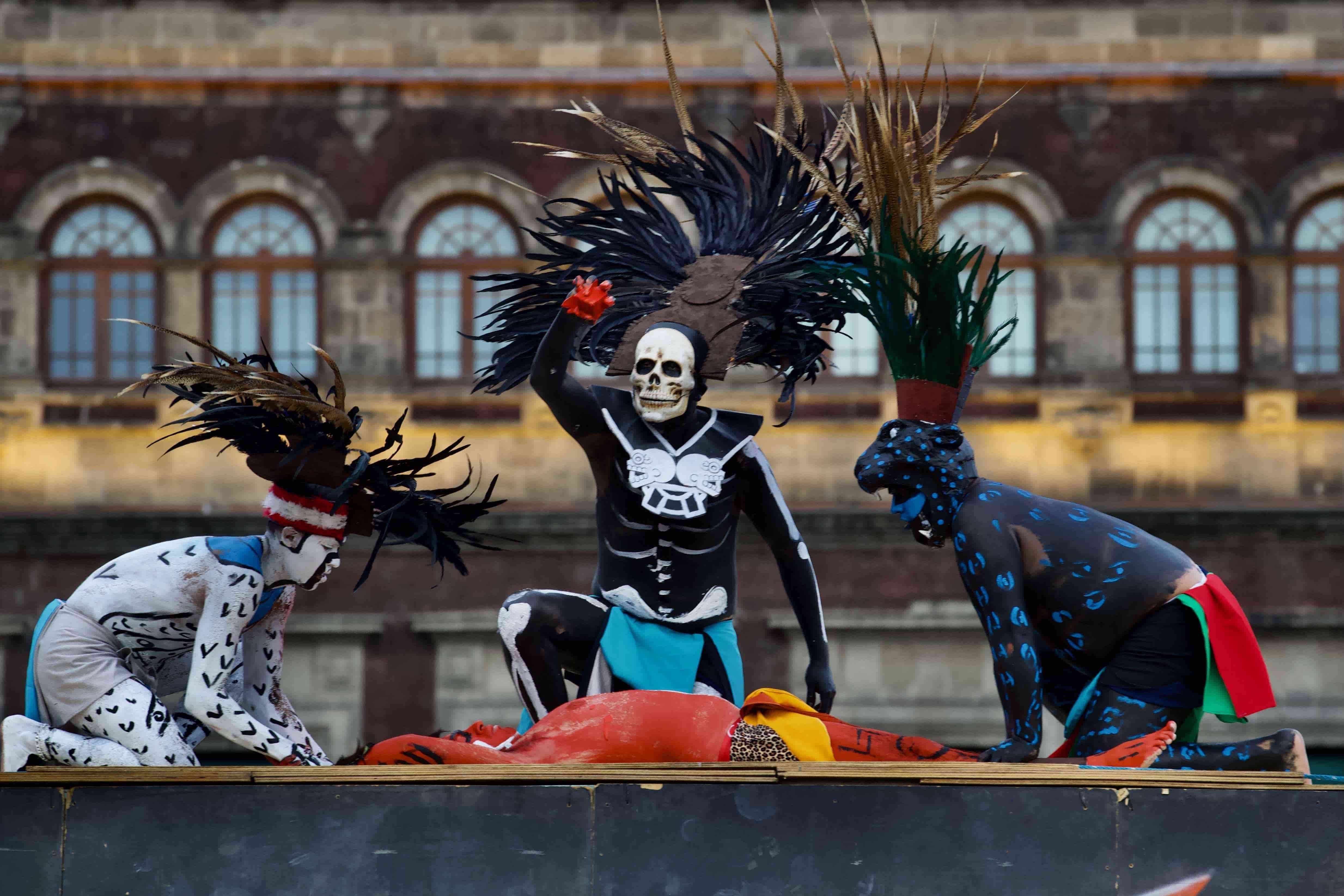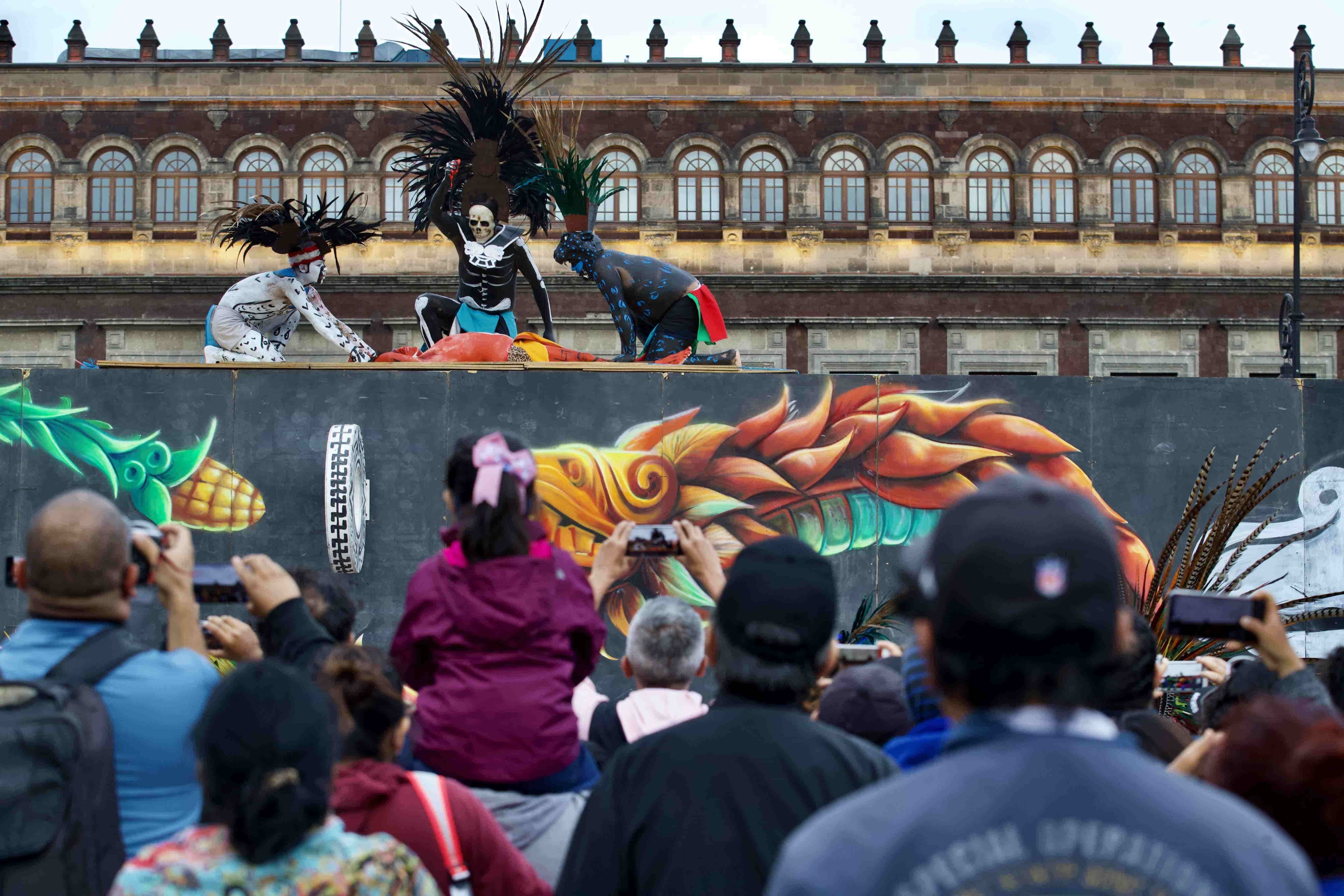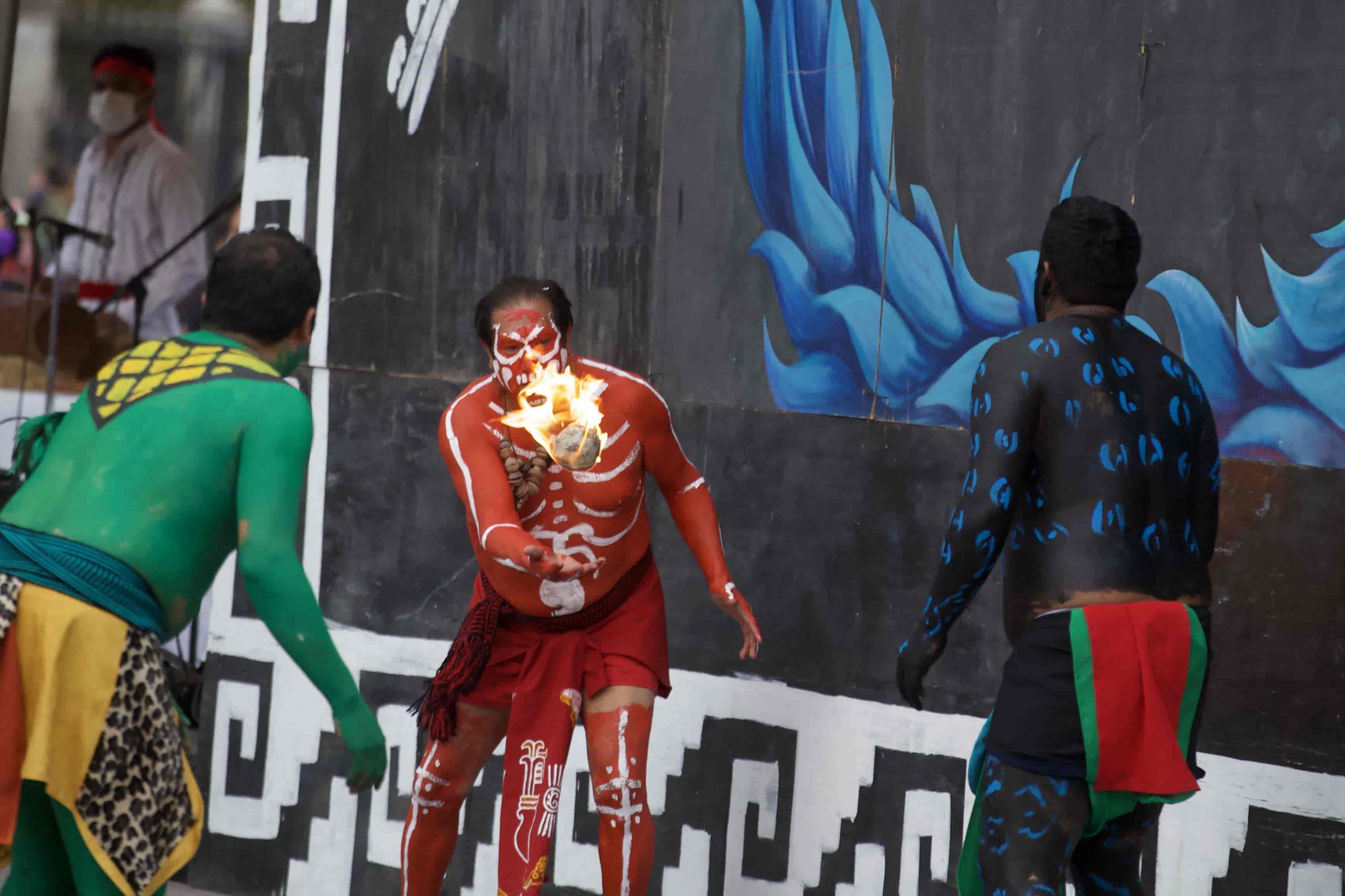 El Gobierno capitalino, que ha rebautizado la conquista española como "la resistencia indígena", organizó una representación escénica de este deporte, conocido como 'tlachtli' en idioma náhuatl, para honrar la cultura de los mexicas o aztecas.