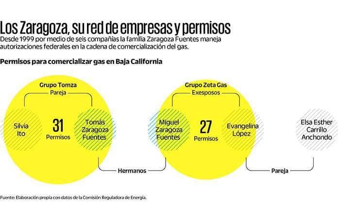 Mexicali, BC.- Desde hace 20 años, en Baja California, 12 integrantes de la familia Zaragoza Fuentes controlan 58 permisos para el almacenamiento, expendio, distribución y transporte de gas licuado de petróleo, y los gobiernos federal y local no los han sancionado por el control que mantienen del mercado.
