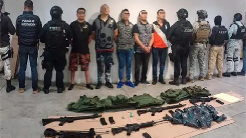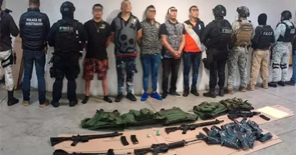 MORELIA, Mich.- En un operativo sorpresa, persona de la Fiscalía de Michoacán, de la Secretaría de Marina, de la Secretaría de Seguridad y Protección Ciudadana, así como de la Secretaría de Seguridad Pública de Michoacán, catearon varios domicilios y aseguraron armas, droga y a ocho personas presuntamente relacionadas a una célula del Cártel Jalisco Nueva Generación.