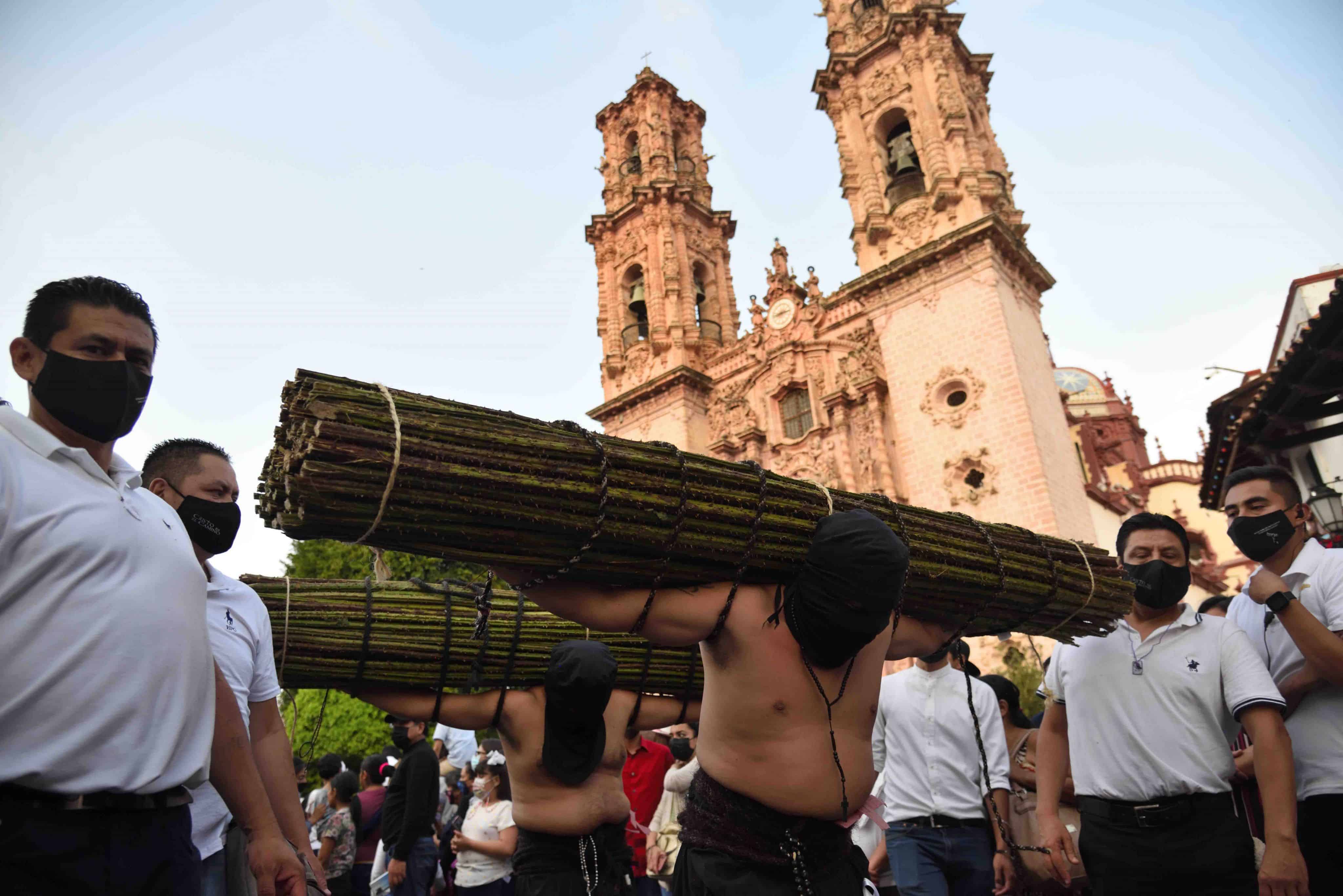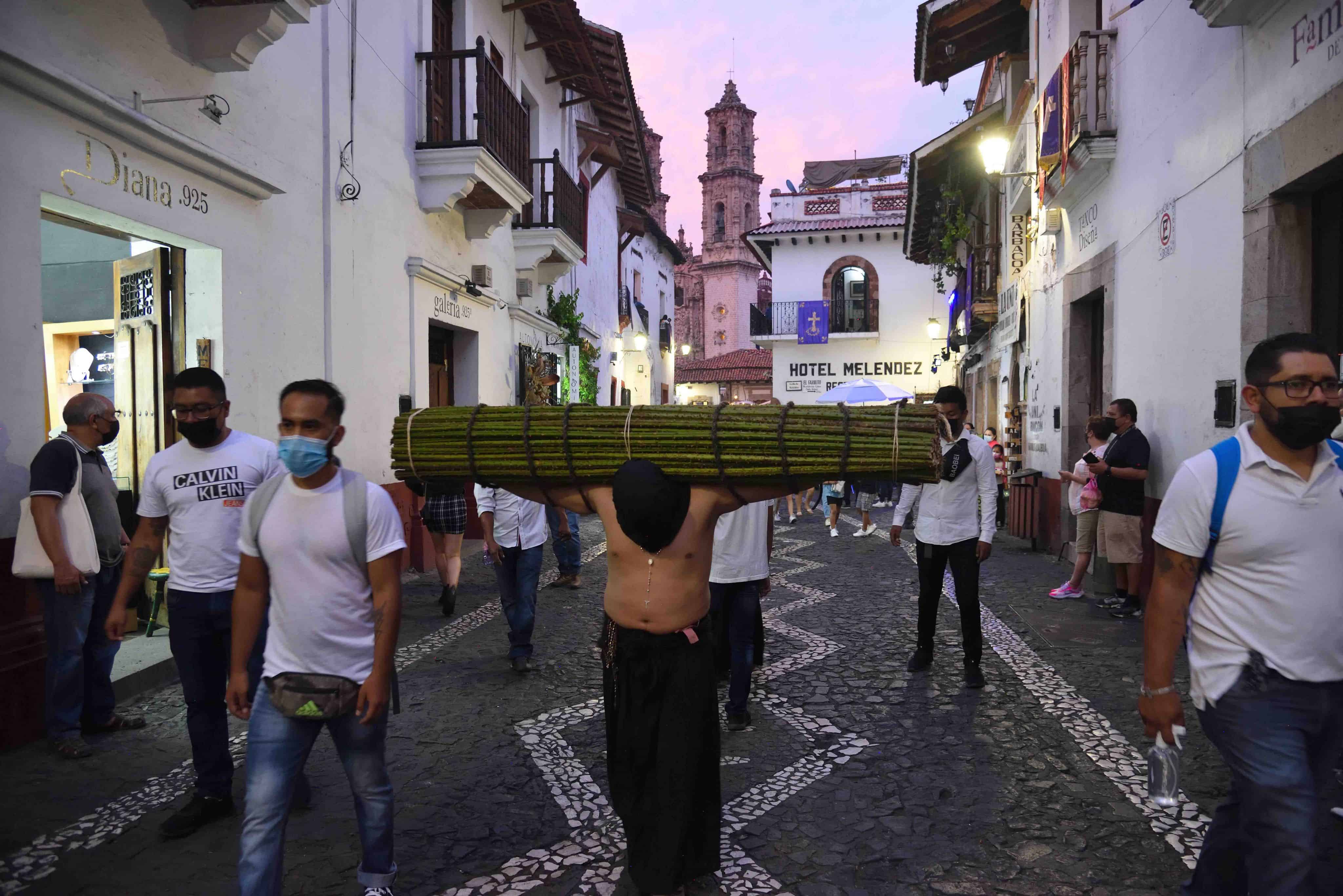 La Semana Santa volvió a Taxco con la misma intensidad de siempre. Domina los días en Taxco: las calles son ocupadas por los encruzados, los flagelantes, los encorvados y las ánimas. Son días donde la tensión de la ciudad está —literalmente— en sus hombros, en sus manos, en sus pies.