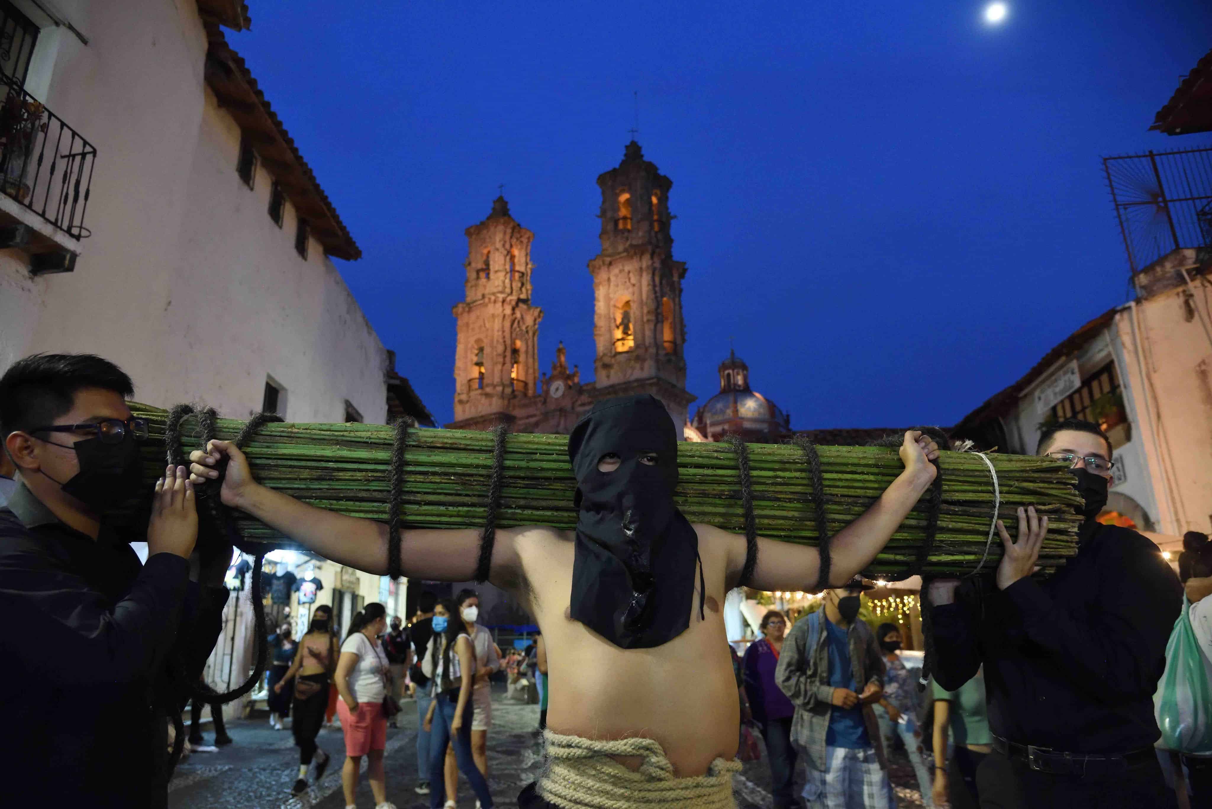 TAXCO, Gro., abril 14 (EL UNIVERSAL).- Los encruzados volvieron a salir a las calles de Taxco, Guerrero, tras dos años en que esta tradición se suspendió debido a la pandemia por Covid-19.