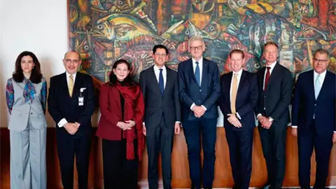 En la reunión también estuvo la subsecretaria, de Relaciones Exteriores, Teresa Marcado; Farid Hannan, director general adscrito a la Subsecretaría para América del Norte; José Octavio Tripp, director general para Europa; y Catalina López Portillo, directora general de Planeación Política y G20.