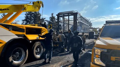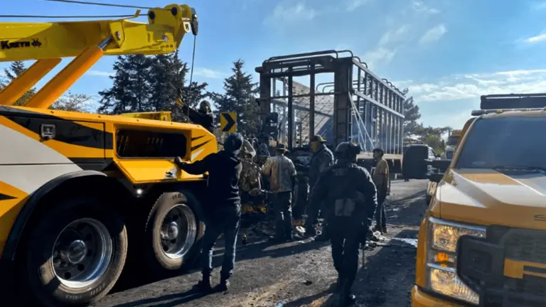 Las unidades fueron utilizadas por la célula delictiva, para atravesarlas y prenderles fuego, con la finalidad de bloquear las vías de comunicación e impedir el avance de las autoridades.