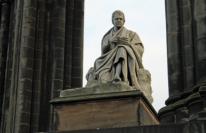 ? Monumento a Sir Walter Scott. Su novela Ivanhoe, de un caballero cuyas aventuras son similares a las del Cid Campeador, es un personaje de la gran literatura romántica.