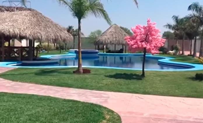 La alberca está llena y limpia, los andadores con losa que semeja adoquín de la zona de jardines lucen impecables, tres palapas en diversas dimensiones están dispersas, cerca de la alberca y en torno al asador.
