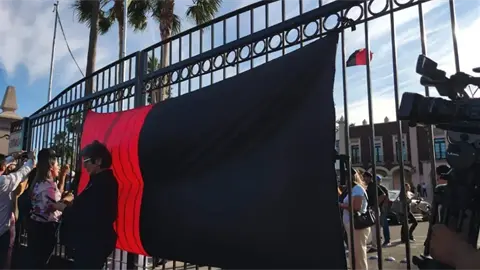 Sindicato coloca banderas rojinegras y anuncia impugnación, mientras autoridades llaman a mantener el diálogo