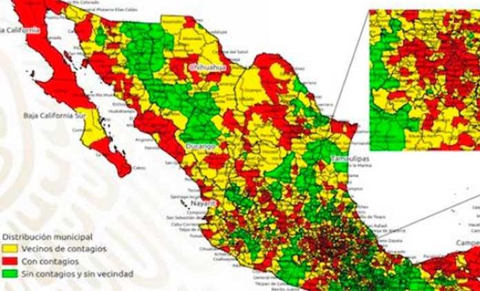 Ayer, el subsecretario de Salud, Hugo López-Gatell, señaló que si bien el país aún no se encuentra en Fase 3, hay zonas "a las que hay que tratar como Fase 3". Posteriormente, las autoridades distribuyeron un mapa en el que se detalla la situación de los 2 mil 463 ayuntamientos que existen en los 31 estados y las 16 alcaldías de la Ciudad de México.