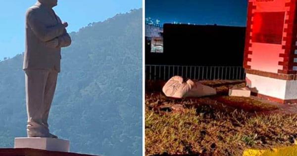 En las primeras horas del 1 de enero, la escultura realizada en cantera rosa fue derribada en Atlacomulco, ya bajo el gobierno de la alcaldesa Marisol Arias Flores, quien derrotó al morenista en las elecciones del 6 de junio pasado, bajo la alianza del PAN-PRI-PRD.