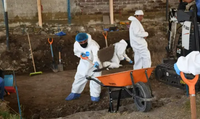 El jueves, la Fiscalía General suspendió la diligencia judicial en el panteón de la comunidad "Pedro Amaro", al sur del estado, ante las condiciones climatológicas provocadas por los efectos del huracán "Erick" y el riesgo de derrumbe de un muro que impactaría directamente en la fosa de excavaciones.