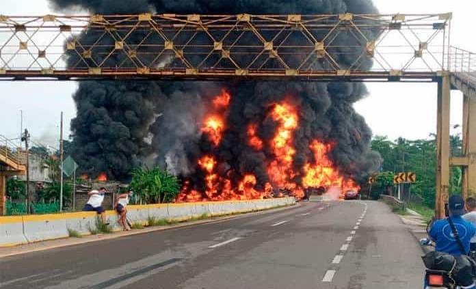 "Accidente de una pipa con combustible, en la ranchería La Raya, carretera Comalcalco-Paraíso, la pipa explotó, está controlado el incendio. Lamentablemente fallecieron el chofer de la pipa, el chofer de otro vehículo y 2 personas que estaban en el lugar. Protección Civil apoyando", detalló el mandatario tabasqueño.