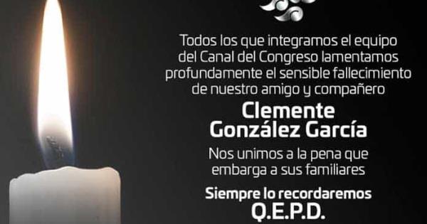 "Todos los que integramos el equipo del Canal del Congreso lamentamos profundamente el sensible fallecimiento de nuestro amigo y compañero Clemente González García. Nos unimos a la pena que embarga a sus familiares. Siempre lo recordaremos. Q.E.P.D.", expresa el mensaje en la red social.