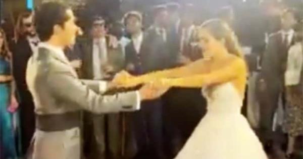 En las imágenes se aprecia a la pareja en uno de sus bailes; así como a asistentes a la fiesta agitan unos pañuelos de color rosa.
