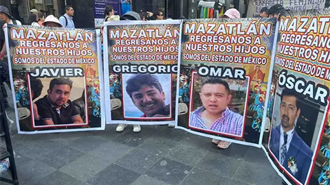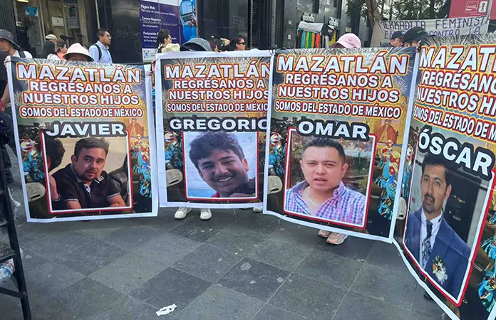 Ciudad de México.- Familiares de cuatro hombres originarios del Estado de México, reportados como desaparecidos el pasado 3 de febrero en Mazatlán, Sinaloa, se manifestaron en el Centro Histórico de la Ciudad de México para exigir a las autoridades federales su pronta localización con vida y avance en las investigaciones.