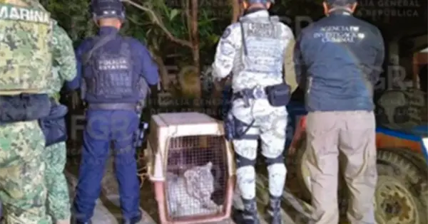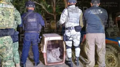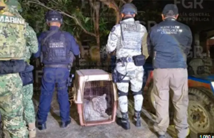 La Fiscalía General de la República aseguró un tigre de bengala en un inmueble de Veracruz con apoyo de la Marina Armada.