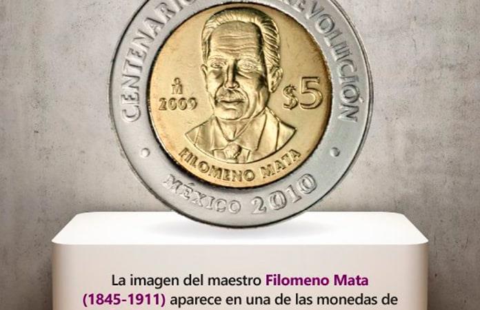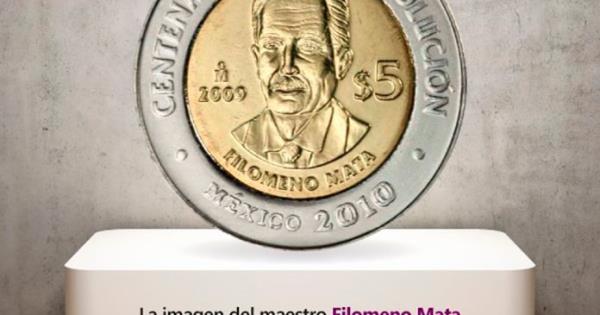 San Luis Potosí, SLP.- Entre las 18 monedas de cinco pesos conmemorativas al Centenario de la Revolución Mexicana que puso en circulación el Banco de México (Banxico), destaca la del potosino Filomeno Mata.