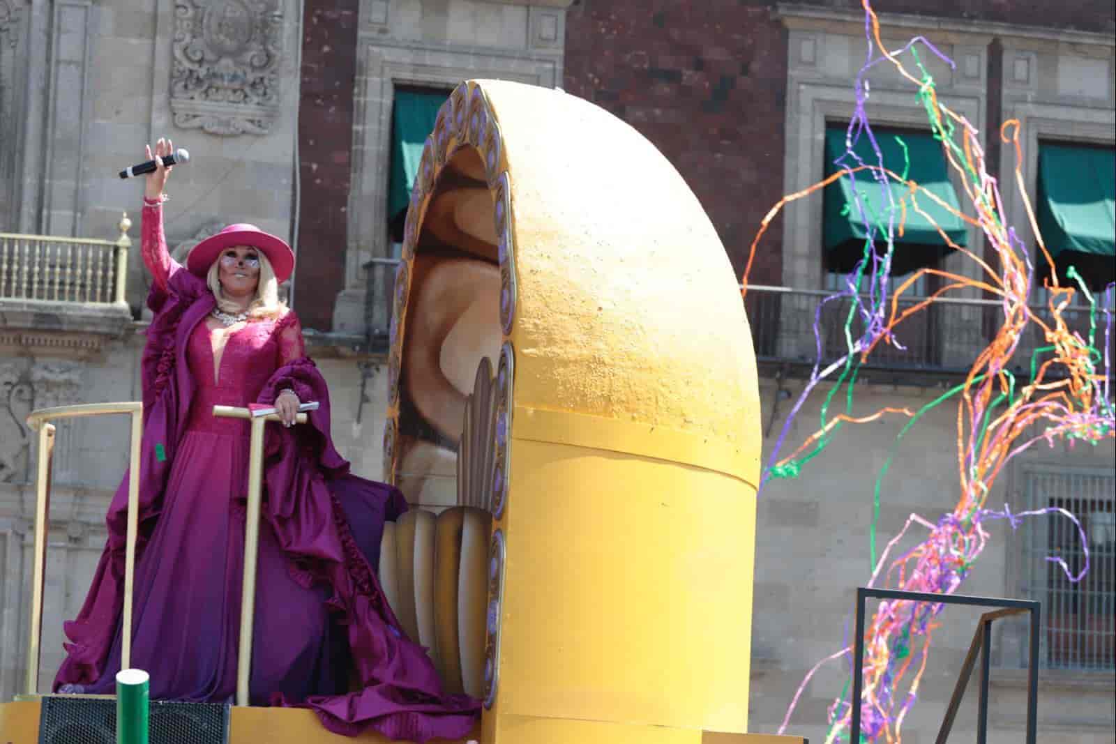 Los carros alegóricos que este año están vistiendo las calles de la ciudad en un recorrido que va desde el Zócalo y hasta Campo Marte tuvieron la presencia de invitados famosos: Yahir, Kalimba, María León, Ariel Miramontes "Albertano" y Laura León, quienes cantaron temas como "Carnaval", de Celia Cruz, y que estuvieron rodeados de bailarines disfrazados con diferentes temáticas.