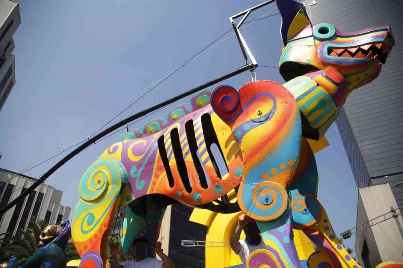 Desde aves, hasta mariposas monarca, una gran figura de Frida Kahlo que yacía recostada en su cama y otra más pequeña de Pedro Infante también recorren las calles de la ciudad para celebrar la festividad mexicana.