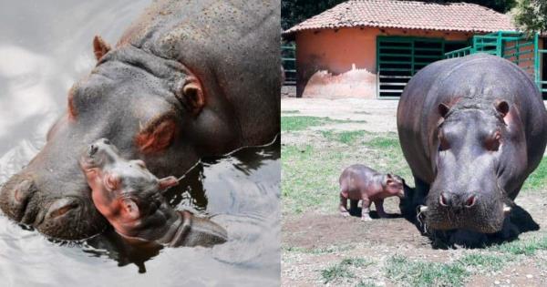 Gracias a la temprana acción de los médicos, el bebé hipopótamo, de quien se desconoce el sexo ya que pasa la mayor parte del tiempo sumergido con su madre, ha logrado aumentar su expectativa de vida de cinco a 15 por ciento.