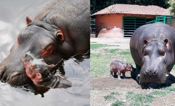 La hipopótamo Tamba y su bebé. Foto: Gobierno del Estado de México.