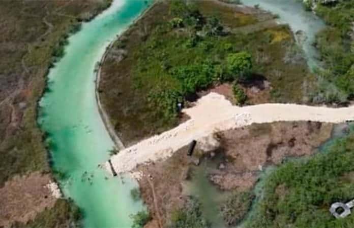 CHETUMAL, QR., julio 9 (EL UNIVERSAL). – "Por error", la Secretaría de la Defensa Nacional (Sedena) rellenó con material, una parte del Río de Chac, ligada a un estero gigante del sistema lagunar Bacalar, zona clave para la salud ambiental de la Laguna de los Siete Colores, a propósito de las obras del Tren Maya en la zona sur de Quintana Roo.