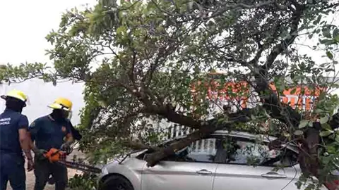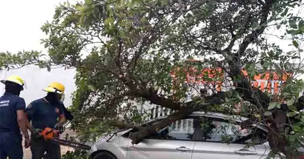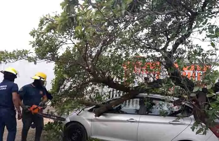 Derivado de las fuertes rachas de viento, personal de Protección Civil del puerto de Veracruz atendió la caída de tres árboles en distintos puntos de la ciudad, uno de ellos sobre un vehículo, sin que se reportaran personas lesionadas.