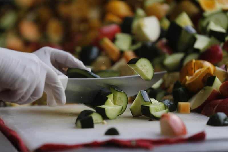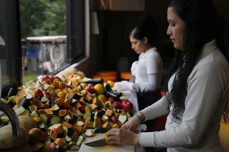 Desde temprano los cocineros lavan y desinfectan la mayoría de los productos y los cortan en diferentes tamaños o las dejan enteros según la especie a la que se va a alimentar. Para las aves el picado debe ser muy fino, para los felinos la pieza debe ser cortada en ocho partes y para los primates más grandes las piezas se ofrecen completas.