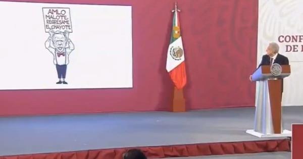 Luego de anunciar que cancelaba su gira en la Ciudad de México para evitar contagios de Covid-19 y "para no darle motivo a los conservadores y a la prensa fifí porque para cuestionarnos, porque no les gusta nada de lo que hacemos", López Obrador exhibió la caricatura de Hernández.