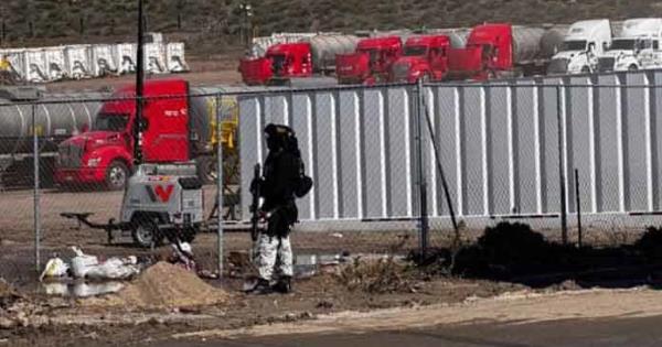 Al cumplimentar la diligencia en el inmueble referido, los efectivos hallaron 100 cajas tipo contenedor con hidrocarburo de 72 mil 800 litros de capacidad cada una, 46 remolques tipo cisterna, cada uno con 31 mil litros de hidrocarburo, 19 tractocamiones de diferentes modelos, 12 motobombas de diferentes capacidades, dos remolques tipo oficina, una cisterna con 4 mil litros de urea, con un estimado de 7 millones 944 mil litros de hidrocarburo.