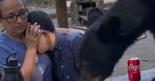 Por medio de la plataforma X, antes Twitter, el usuario @webcamsdemexico compartió el video donde se observa a una mujer proteger a su hijo, mientras que el oso se encuentra comiendo los platillos de la mesa.