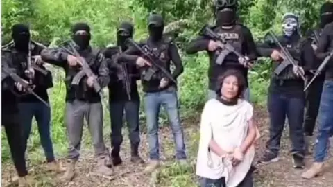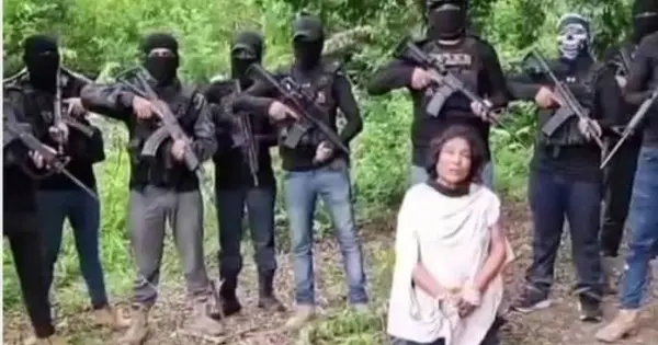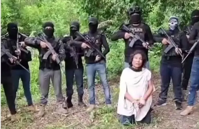 La profesora de 62 años se encontraba sometida, arrodillada y atada de manos, rodeada por hombres armados; fue obligada a leer un mensaje donde pedía a los taxistas de esa región pagar la cuota a la delincuencia o de lo contrario sufrirían la misma suerte.