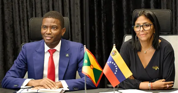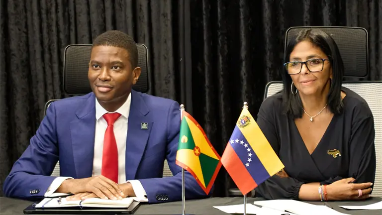 GEORGETOWN, Guyana (AP) — El gobierno de Guyana presentó el martes una queja ante líderes del Caribe después de que la presidenta interina de Venezuela, Delcy Rodríguez, apareció en una serie de visitas oficiales con un polémico broche con la forma de un mapa venezolano que incluye a una región occidental de Guyana que Caracas ha reclamado como propia desde hace tiempo.