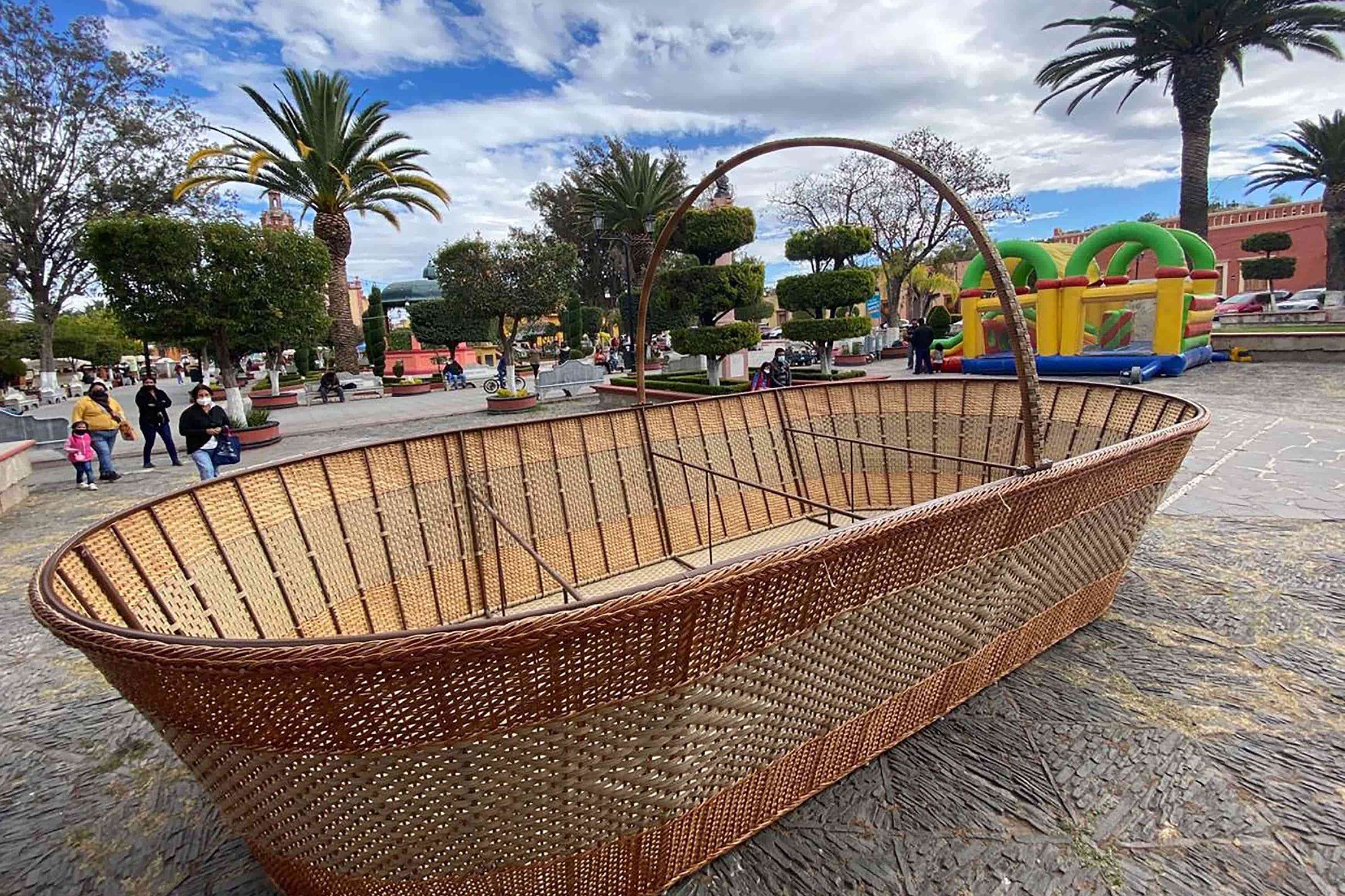 QUERÉTARO, Qro., febrero 14 (EL UNIVERSAL).- Como un homenaje a los artesanos queretanos, es que la canasta movible más grande de México recorre los municipios de la entidad. Esta canasta hecha de varita de sauce de 6 metros de longitud, tres metros de alto y 400 kilos, es la viva representación del trabajo que realizan los tejedores de diversas demarcaciones y comunidades, principalmente de Tequisquiapan y Boyecito en Cadereyta de Montes.