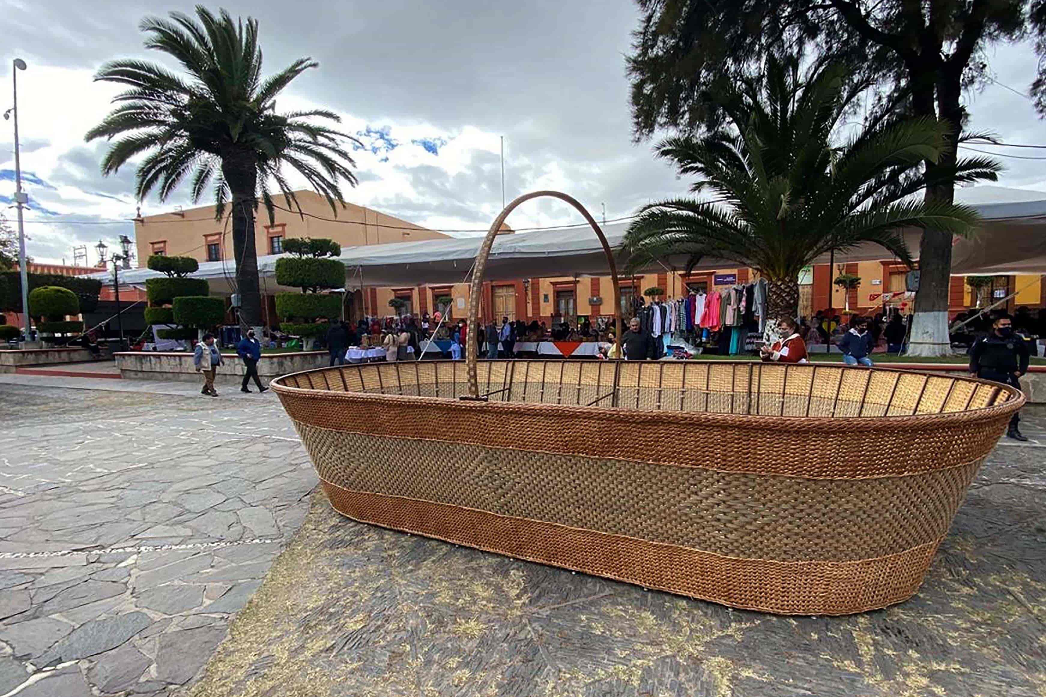 Hacen en Querétaro canasta gigante para mantener viva tradición del tejido