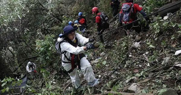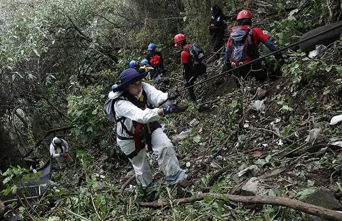 Para encontrarlos, descendieron 120 metros en una pendiente pronunciada con tres líneas de vida. Usaron arneses, cascos, rodilleras y guantes, todo para acercarse a sus hijos e hijas que desaparecieron en la zona.